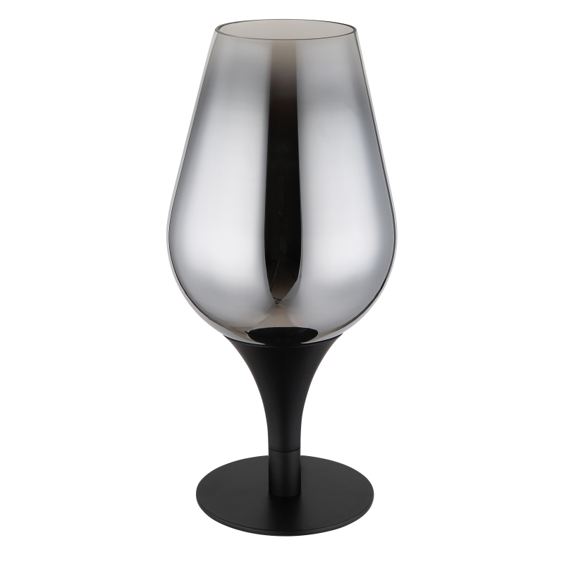Materiál čierny matný kov, sklo chrómovej farby, priehľadné, čierny textilný kábel