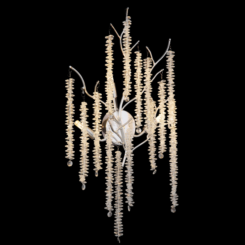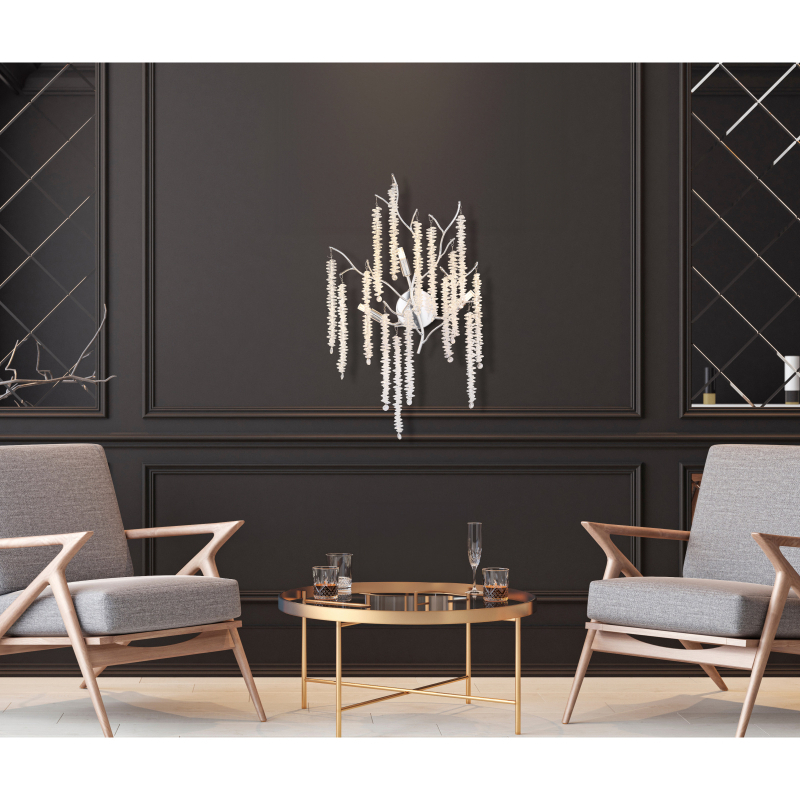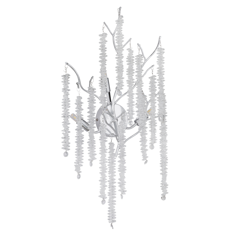 Nástenné svietidlo LAVERNE kombinuje klasickú eleganciu s modernými akcentmi a stane sa štýlovým prvkom vo vašej izbe. Chrómované kovové a hliníkové telo vytvára lesklý, luxusný vzhľad, ktorý dokonale ladí s priehľadným plastovým krištáľovým tienidlom. Zdobené vetvy s krištáľovými závesmi dodávajú svetlu sofistikovaný, trblietavý nádych a pôsobivo ho odrážajú. Toto tradičné nástenné svietidlo prináša do vášho domova svetlo aj krásu, či už na chodbe, v obývačke alebo v spálni. Dodá každej miestnosti špeciálnu atmosféru a podčiarkne elegantný, nadčasový dizajn. Nástenné svietidlo LAVERNE neobsahuje žiarovky G9, ktoré je možné podľa potreby pridať pre dosiahnutie dokonalého jasu