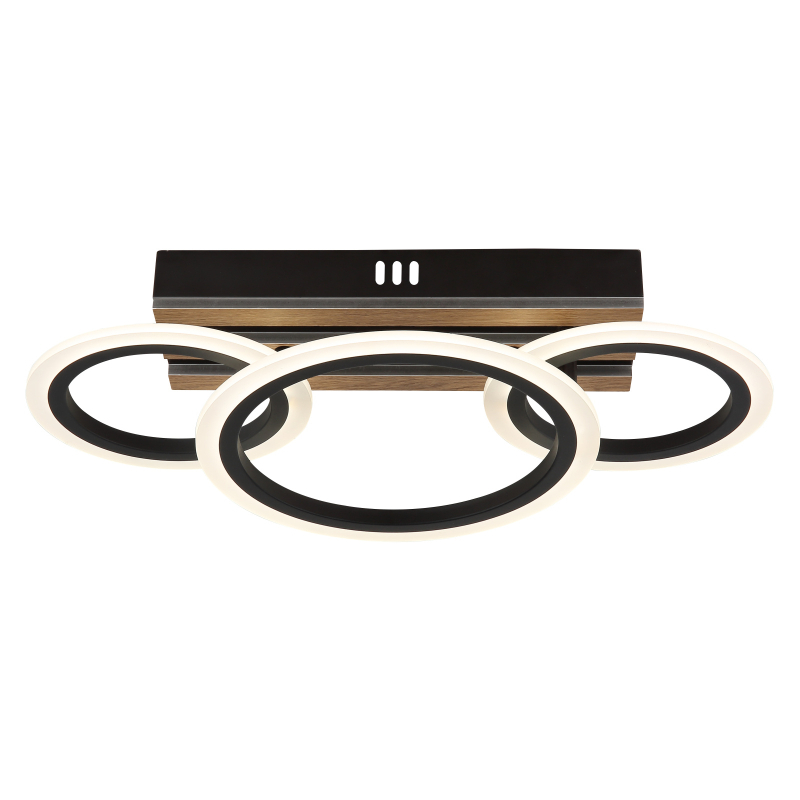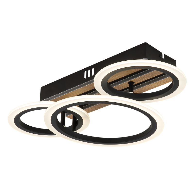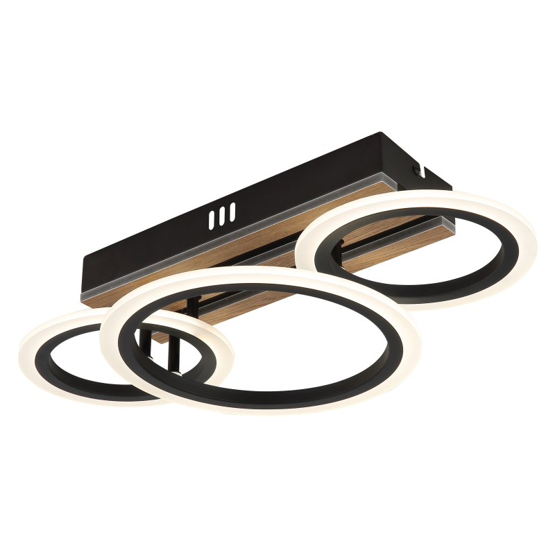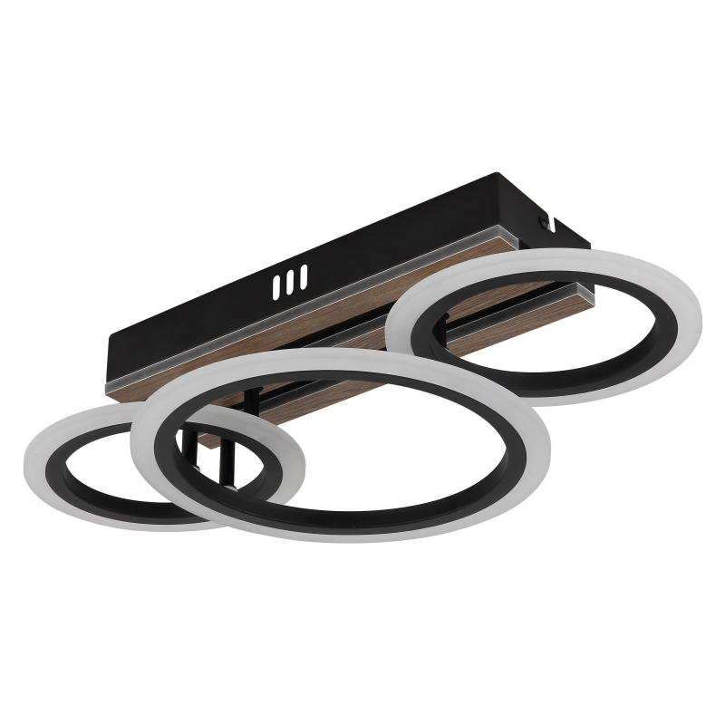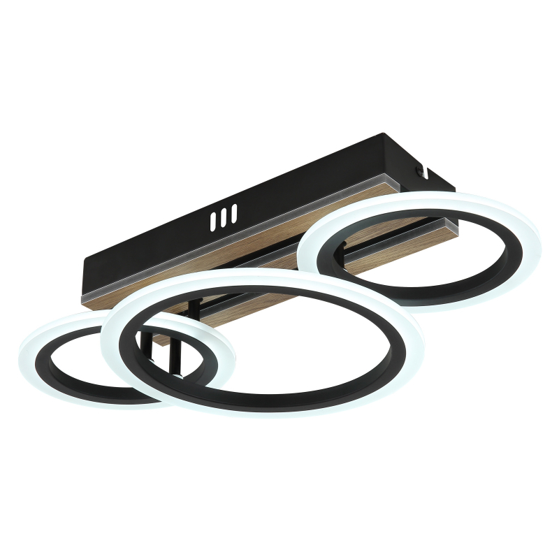 Stropné svietidlo BLEVINS zaujme svojím moderným dizajnom a funkčnými prvkami, ktoré skrášlia každý domov. Obdĺžnikové telo z matného čierneho kovu je doplnené elegantnými aplikáciami z MDF s dreveným vzhľadom, ktoré dodávajú svetlu teplý a prirodzený lesk. Tri prstence šikovne pripevnené, vytvárajú dynamický vzhľad a robia zo svetla skutočný vrchol vašej miestnosti. Biele plastové tienidlo zaisťuje rovnomerné a príjemné rozloženie svetla. S CCT od 3000K do 6500K je možné individuálne nastaviť teplotu farby, zatiaľ čo funkcia pamäte ukladá vaše preferované nastavenia. Stropné svietidlo BLEVINS ponúka svetelný tok 1210 lúmenov, čo zaisťuje efektívne osvetlenie. Vďaka LED zdrojom ponúka nielen vynikajúci jas, ale aj vysokú energetickú účinnosť