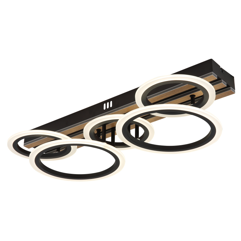 Stropné svietidlo BLEVINS kombinuje moderný dizajn s praktickými funkciami a dodá vášmu domovu štýlové akcenty. Obdĺžnikové telo z matného čierneho kovu je doplnené tmavými MDF aplikáciami s dreveným vzhľadom, ktoré dodávajú svetlu teplý a prirodzený vzhľad. Päť krúžkov zaisťuje dynamický, no zároveň elegantný dizajn. Biele plastové tienidlo zaručuje rovnomerné, príjemné rozloženie svetla a vytvára útulnú atmosféru. S CCT od 3000K do 6500K je možné teplotu farby nastaviť podľa potreby, zatiaľ čo funkcia pamäte ukladá vaše preferované nastavenia. Stropné svietidlo BLEVINS ponúka svetelný tok 1750 lúmenov, čo zaisťuje výkonné a efektívne osvetlenie